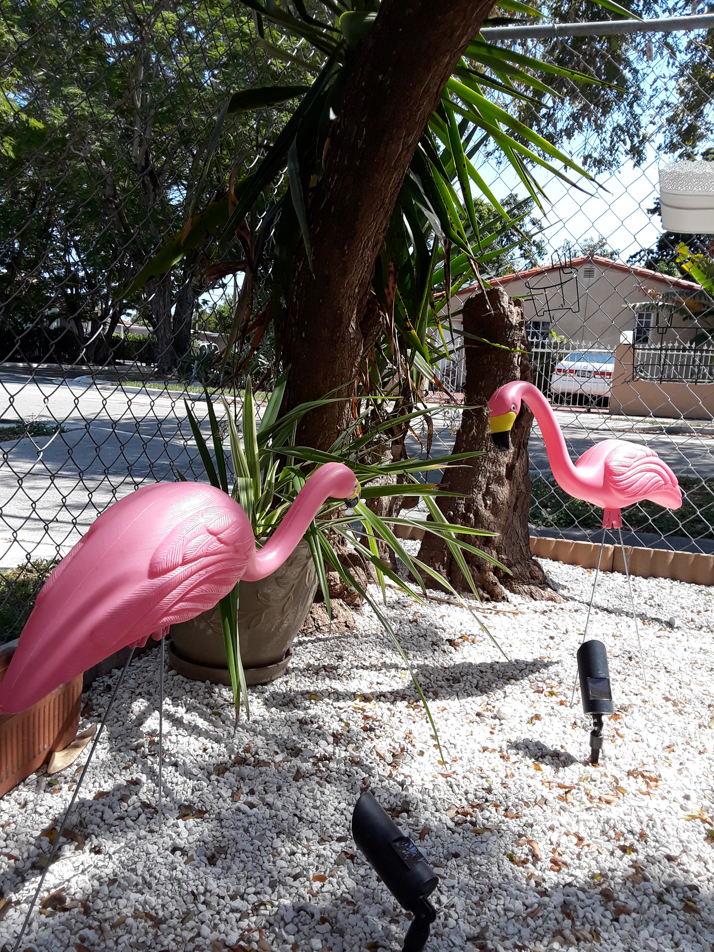Posted: April 4, 2020 Filed under: Mishaps, Wandering in the city Leave a commentI am living in a duplex in the Little Havana neighborhood of Miami. My immediate neighbors and I share a little garden patio that faces the sidewalk. Weeks before the pandemic hit Miami, before it occurred to any of us that we’d all be living in close quarters with roommates or partners or children, and with nowhere to go, the couple next door found patio furniture to sit on. They gathered terracotta pots from local garage sales. They planted herbs: dill, basil, mint, rosemary, parsley… all flourishing now. We even have our own twin plastic pink flamingos in the yard.