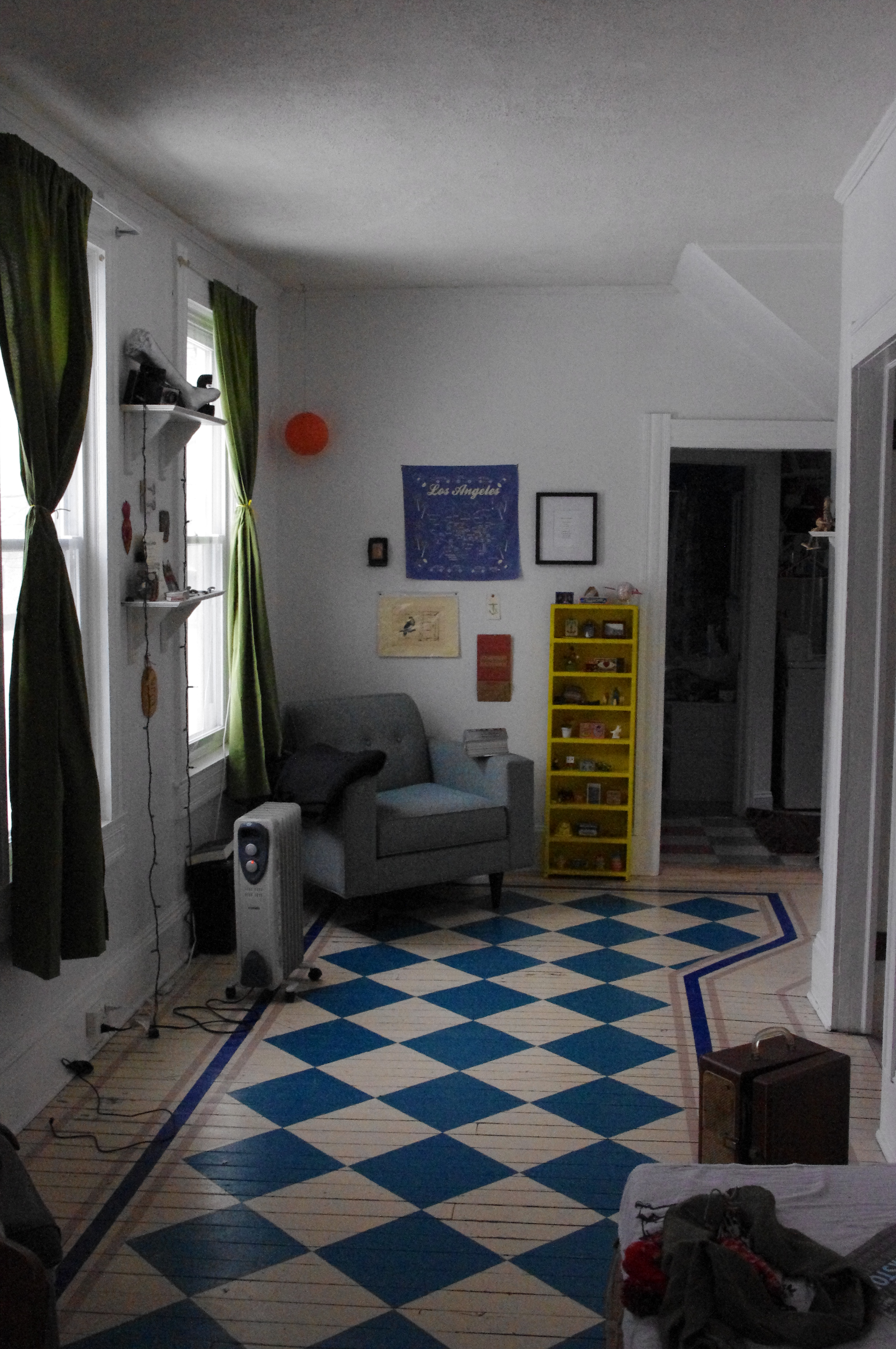 Posted: December 7, 2013 Filed under: Wandering in the city Leave a commentDear readers, for your viewing pleasure, I give you a photo of one room in my own personal Cleveland palace. Situated in the bubbling hipster neighborhood known as Tremont, my digs are absolutely wonderful (and considerably more affordable than anything I could have rented in equivalent size or charm in Los Angeles.) I love this place. Those floors: hand-painted by my crafty, rocker, bohemian, pagan landlord.*